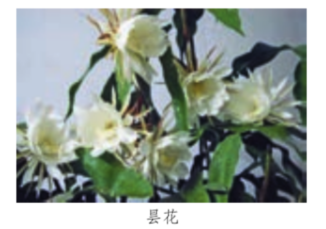 【昙花】常绿灌木。花白色,多在夏天晚上开放,数小时就凋谢。