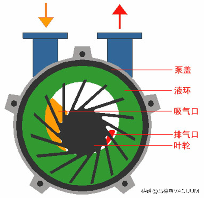水环泵是靠泵腔容积的变化来实现吸气、压缩和排气的,因此它属于变容式真空泵。