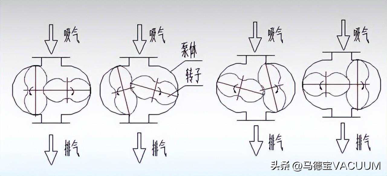 罗茨真空泵工作原理: