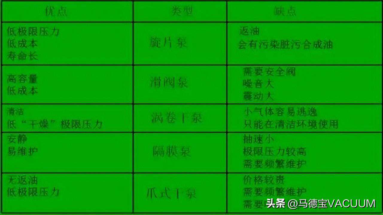 部分真空泵的主要特点及比较: