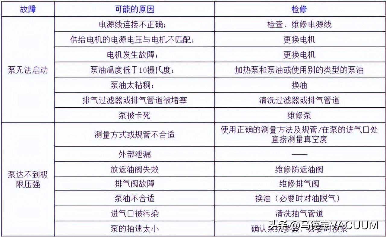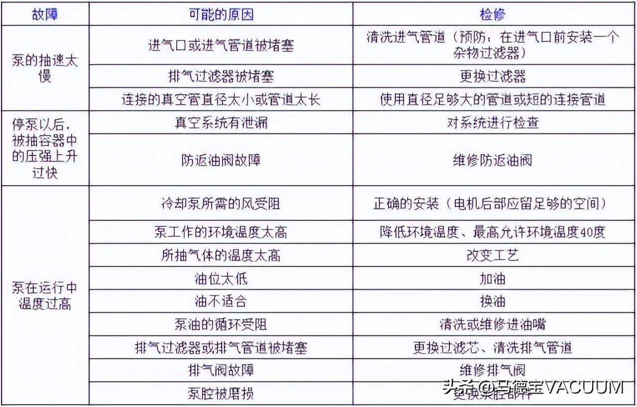 常见真空泵故障处理措施: