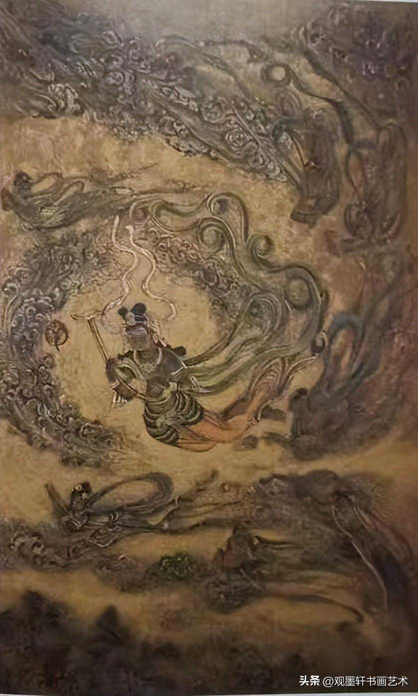 经过上百次的想象和思索,萌发了以中国传统的“太极”图为基点,把两幅大壁画以两个太极的形式进行呈现的想法,使两个极似太极的飞天周而复始地在天空不停地旋转,永无停歇,喻示生命力的生生不息。