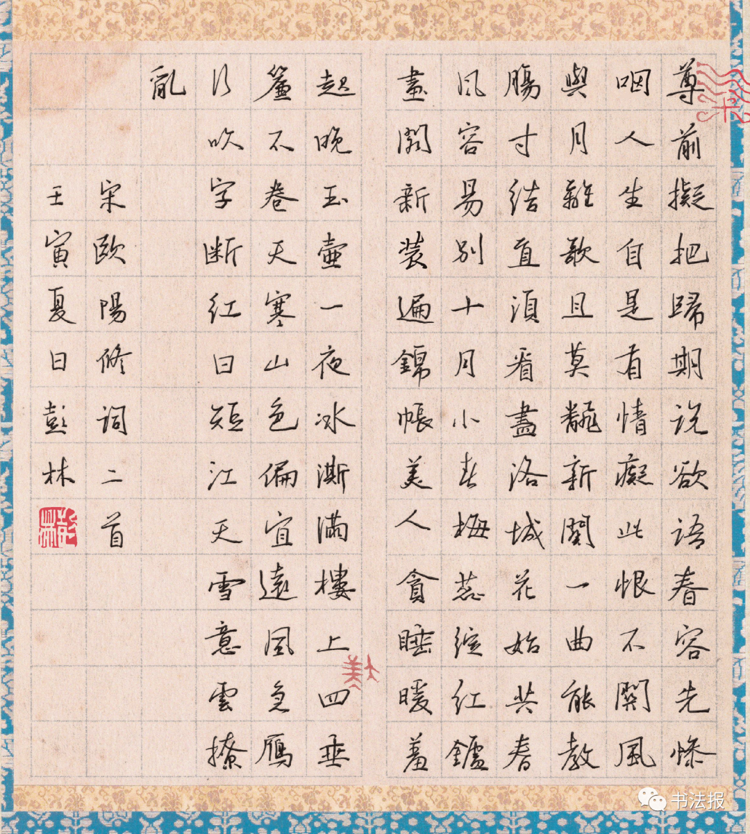 十月小春梅蕊绽,红炉画阁新装遍。锦帐美人贪睡暖,羞起晚,玉壶一夜冰澌满。