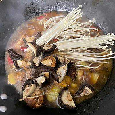 6、加水开锅后放入香菇金针菇等自己喜欢的食材