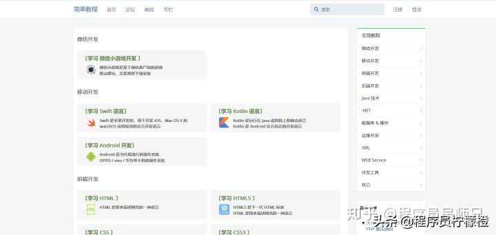 一、在线教程首先列出一些在线教程网站,这些在线教程网站通常都比较适合入门,可以作为开发学习路上的第一个阶梯,也可以作为工作中的在线文档。