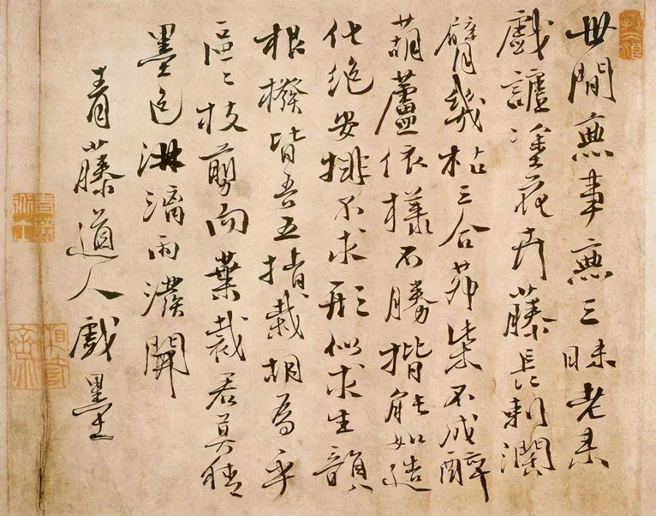 (1521年-1593年)明代著名文学家、书画家。与解缙、杨慎并称“明代三大才子”。徐渭的书法和明代早期书坛沉闷的气氛对比显得格外突出,他最擅长气势磅礴的狂草,但一般人很难看懂,用笔狼藉,他对自己的书法极为喜欢,自己认为“书法第一,诗第二,文第三,画第四”。