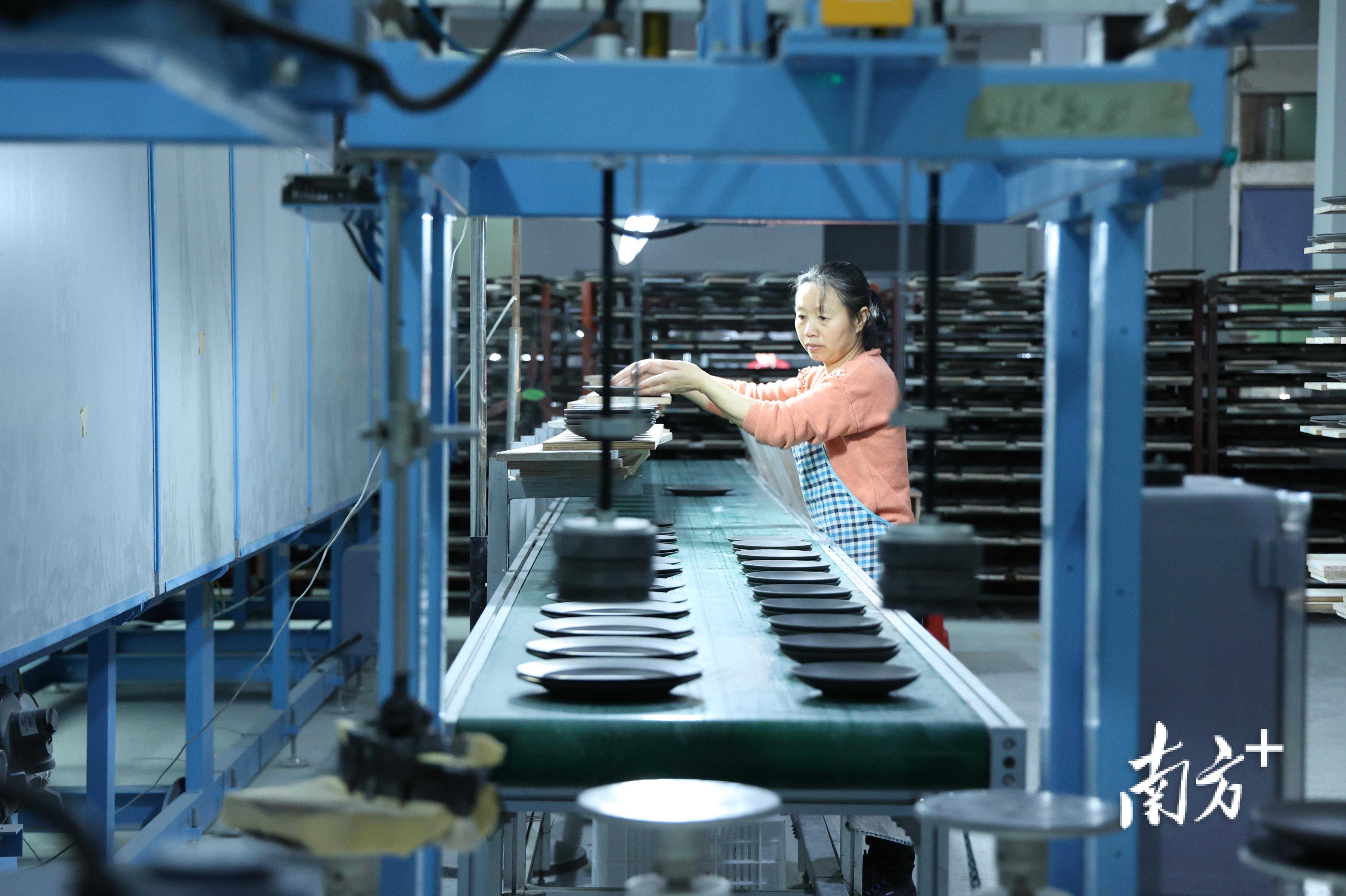 品牌打造离不开优质产品的支撑,这背后是潮州陶企对产业转型升级的探索。从制造迈向“智造”,必须加快自动化、智能化、数字化转型。近年来,松发陶瓷不断引进先进自动化生产线、智能转移印彩生产线,打造日用陶瓷智能化工厂。在广东四通集团股份有限公司,每年投入超千万元的研发经费,对生产线进行智能化改造,对窑炉装备进行“绿色化”升级,增加产品附加值。