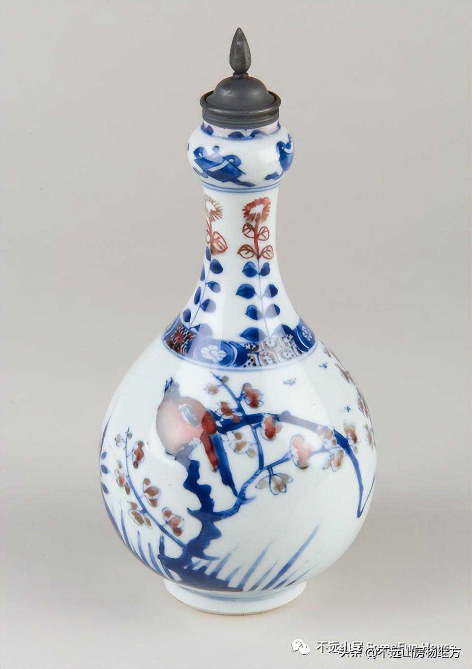 清康熙青花釉里红花卉纹蒜头瓶美国大都会博物馆藏