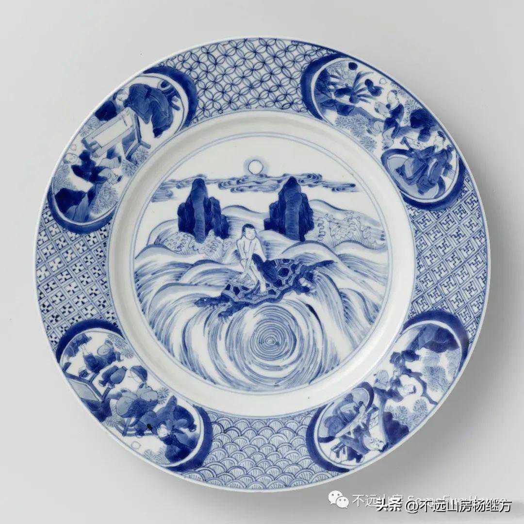 荷兰国立博物馆藏清康熙青花黄安乘龟图案盘