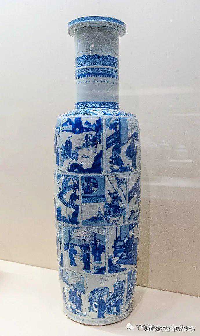 济南博物馆藏清康熙青花开光人物纹卷筒