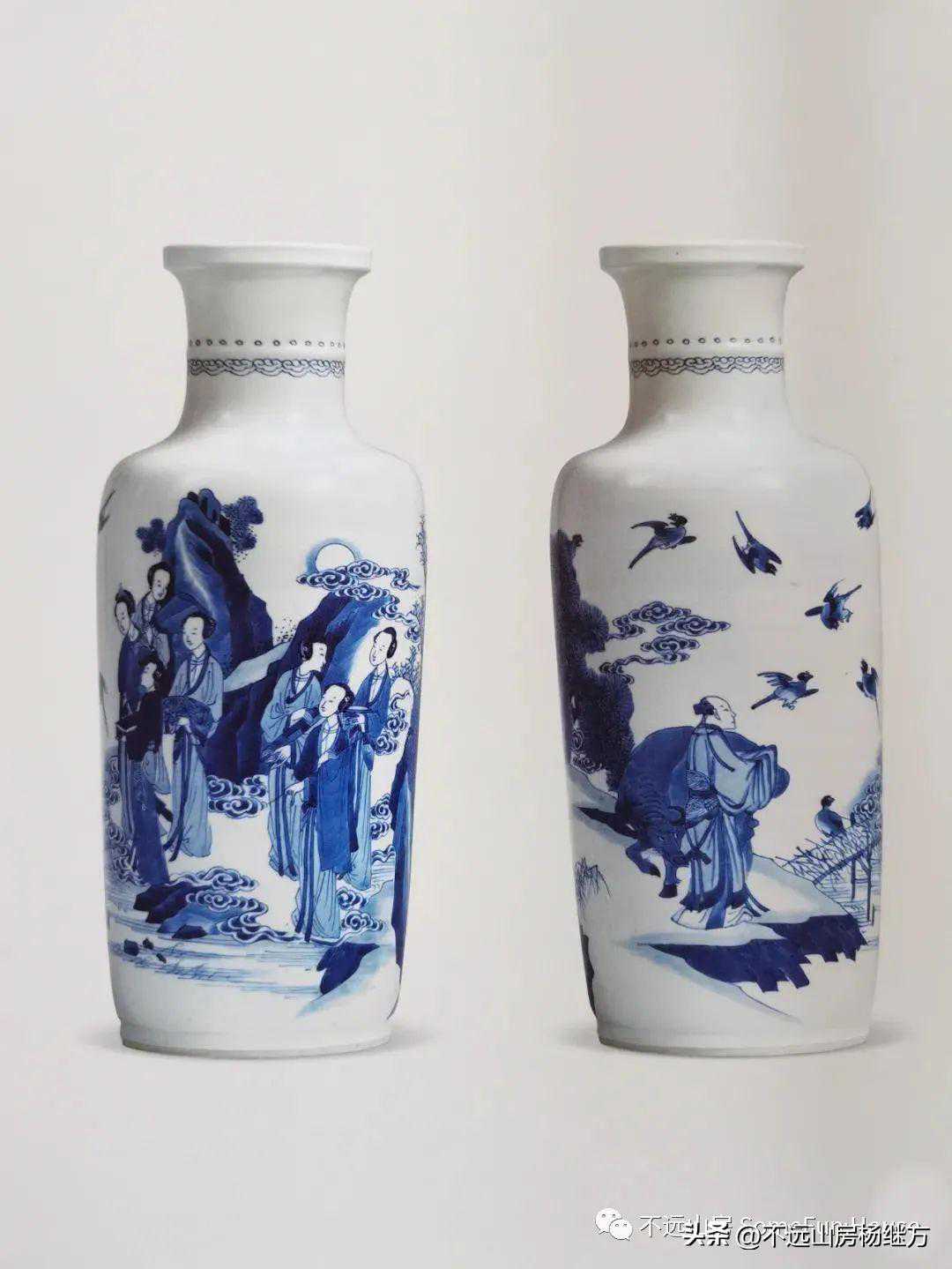 巴黎佳士得2020春的康熙洒蓝釉青花福禄寿三星图棒槌瓶