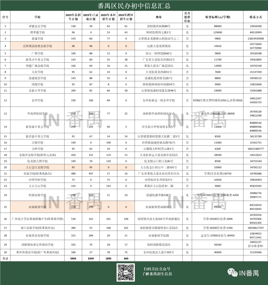 下方整理了番禺区8所热门番禺民校的相关信息,并附上2023年招生计划、是否摇号、学费、宿位等,建议收藏!
