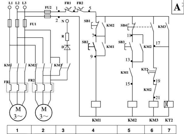 总结:看图的一般方法是先看主电路,后看辅助电路,并用辅助电路的回路研究主电路的控制程序,看图的步骤首先是看主电路中有哪几种电气设备,每个电气设备的用途,接线方式和有关要求与联系.就以电动机为例,从种类上看是直流还是交流;是异步还是同步;从绕组上看是星形接线还是三角形接线;从起动方式上看是全压起动还是降压起动;釆用哪种控制方式,是正转还是反转的,等等.再全面了解其它电器组件的相互联系和作用,如电源开关,熔断器,继电器,接触器等,以及各种电器组件的电压等级,然后再看图中辅助电路的构成,并根据辅助电路的回路研究电路的动作情况,以及电路中各组件的相互关系和动作联系等.全面了解上述问题后,便可综合在一起看电路图了.