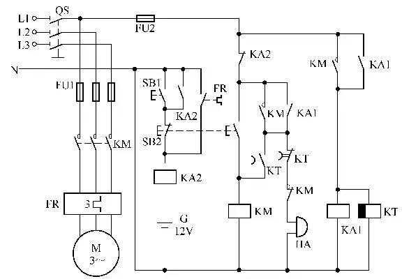 带有报警装置的电动机短暂停电来电后自动再起动电路