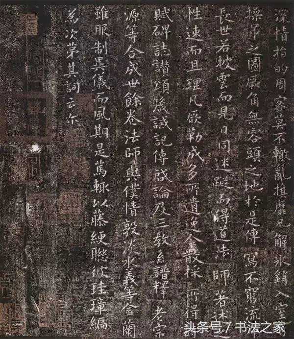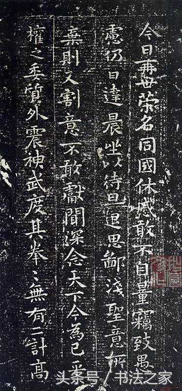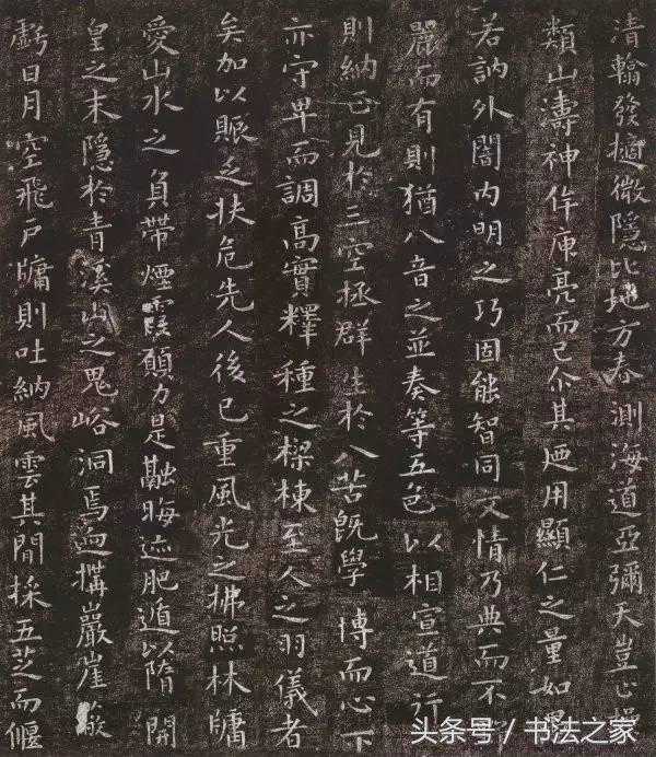 《破邪论序》为虞世南小楷代表之作。用笔丰润圆融,方圆兼备,柔中有刚,以韵取胜。尤其值得一提的是,该碑在章法上形成了行距宽于字距的布局体系,给人以心旷神怡的艺术享受。这种章法特点到了五代杨凝式、宋代林逋那里越发夸张,一股萧散之气扑面而来,旷淡之情改变了有唐以来楷书章法森严茂密的气氛。