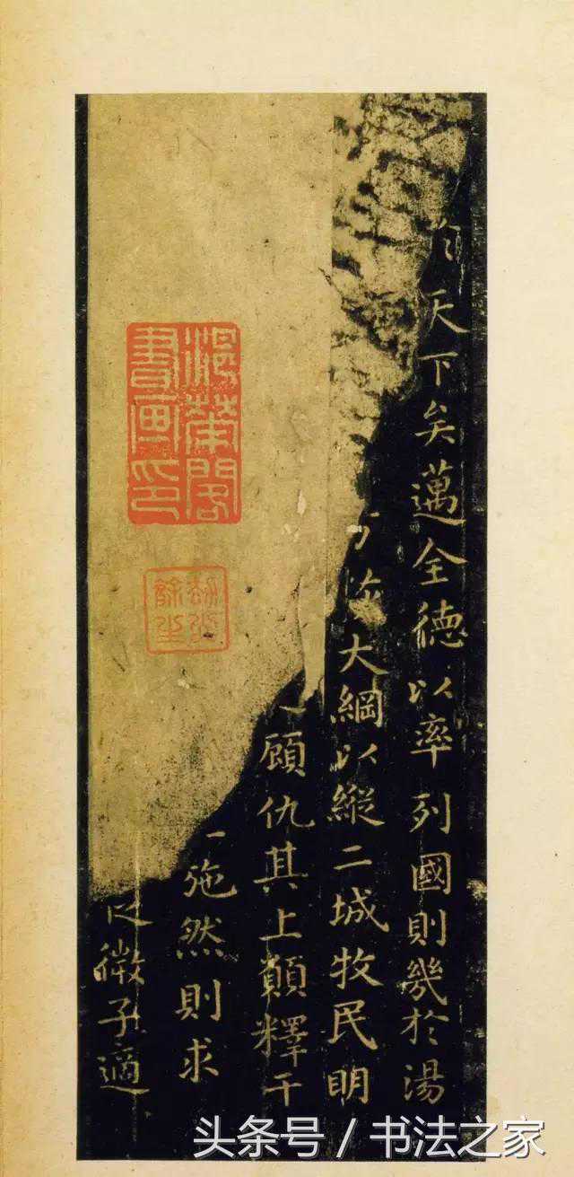 此帖章法纵紧横疏,气势开阔,每行字的大小、轻重、正欹、宽窄,错落有致,极尽自然之趣,体现出一种雄浑厚朴、沉着高古的艺术风格。