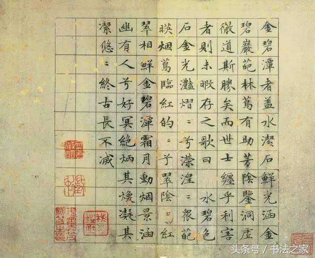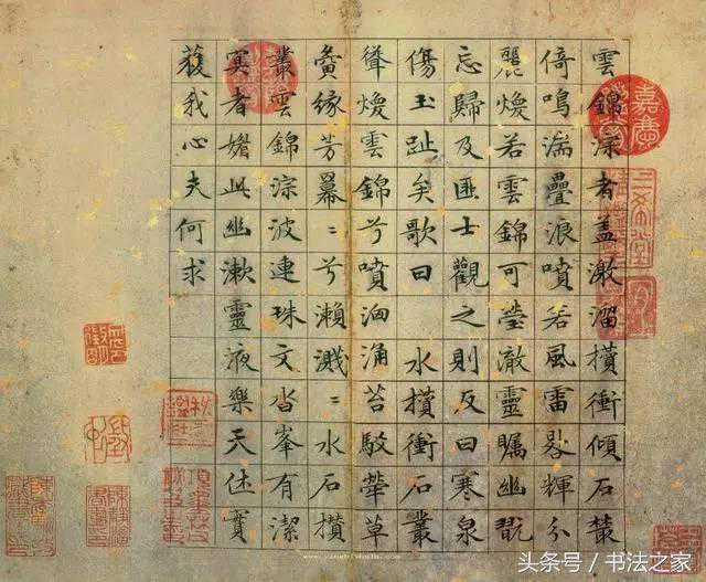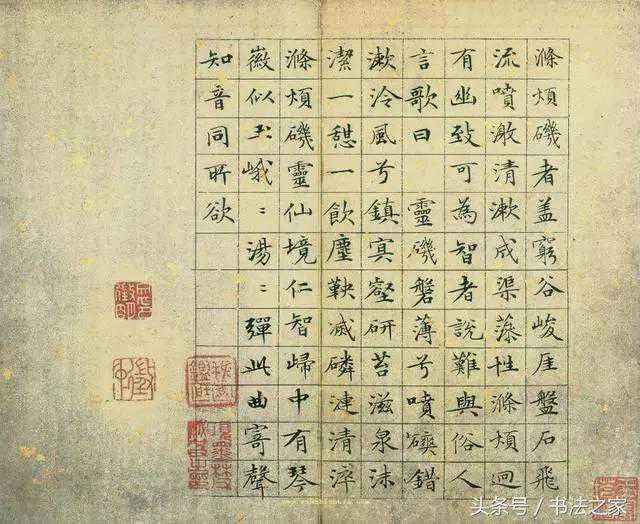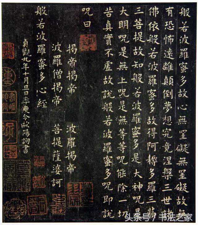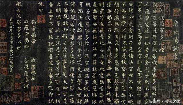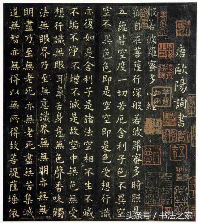 《心经》是欧阳询小楷代表作,用笔犀利,刚柔相济,字字严整端庄,理法兼备。