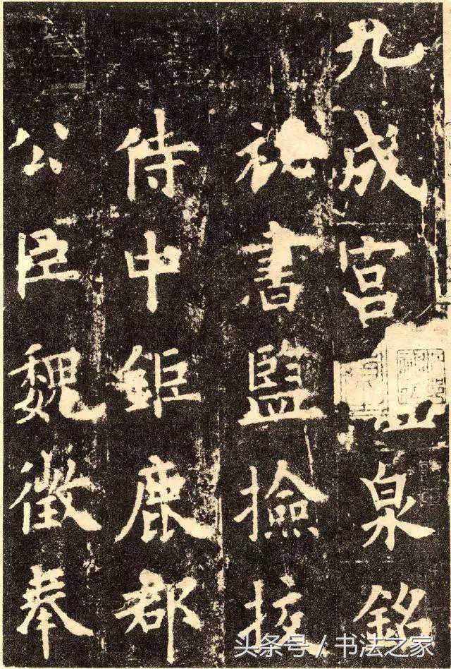 他的书法成就以楷书为最,笔力险劲,结构独异,后人称为“欧体”。其源出于汉隶,骨气劲峭,法度谨严,于平正中见险绝,于规矩中见飘逸,笔画穿插,安排妥贴,被后代书家奉为圭臬。宋《宣和书谱》誉其正楷为“翰墨之冠”,楷书以《九成宫醴泉铭》等为最著名。