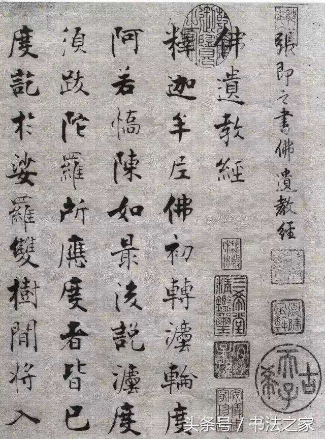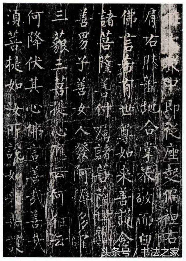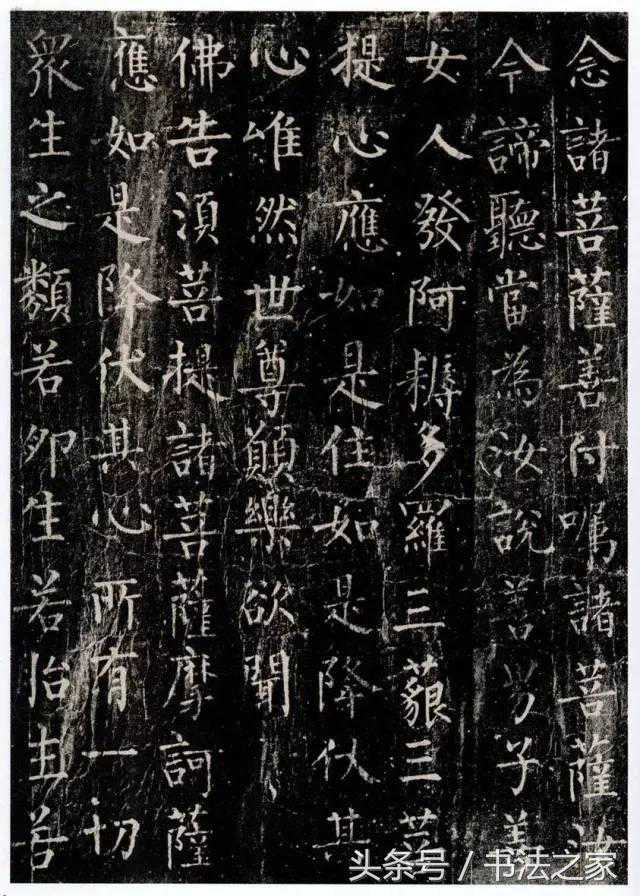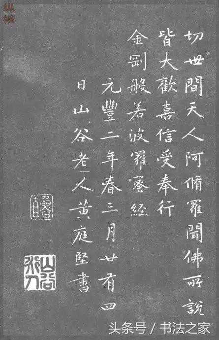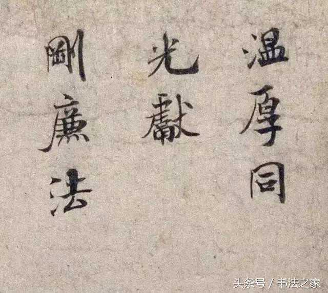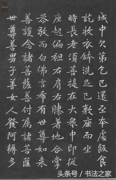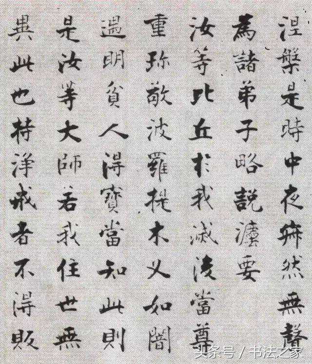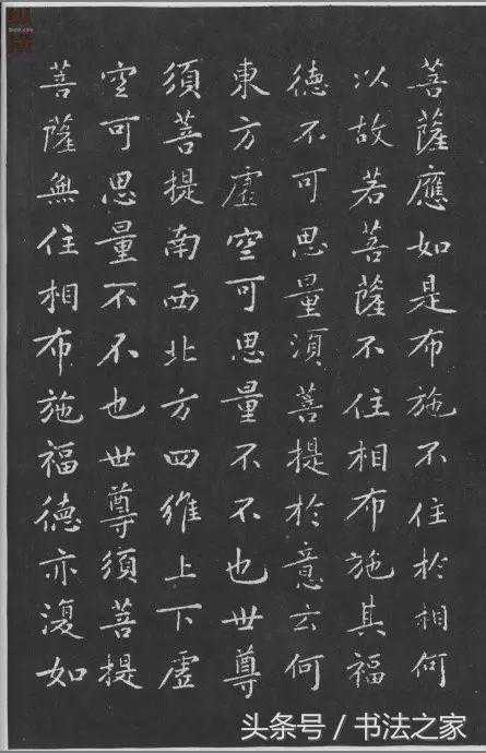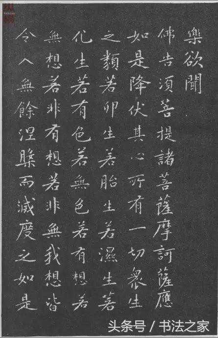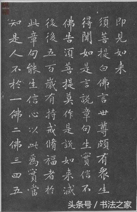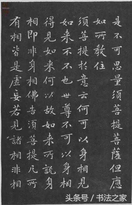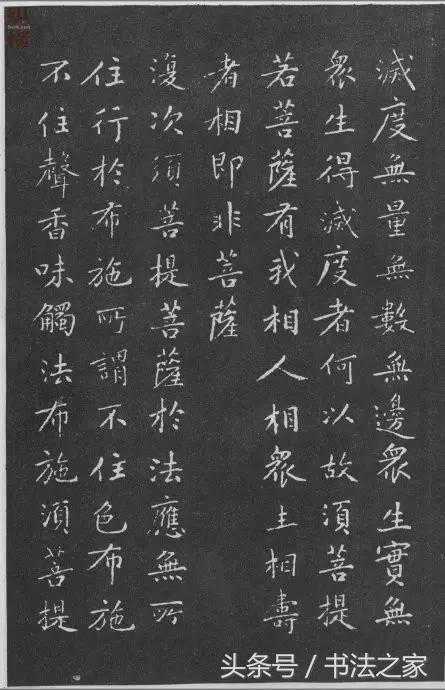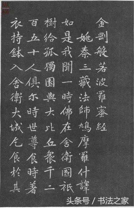 《金刚经》为柳公权早期作品,字不大但用笔灵巧劲健,虽近颜法,但明显地摒弃了“蚕头雁尾”的用笔,而多融入魏晋及初唐楷意,并掺之以北碑的骨力,所以表面看上去感觉平常,有剑拔弩张之势,但仔细观察则富于变化,方劲中有清灵通秀之气,节奏明快,极富动感,整体法度森严而富庙堂气象。