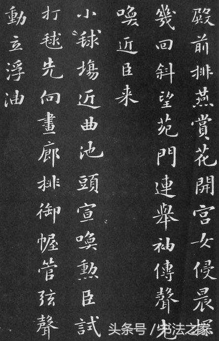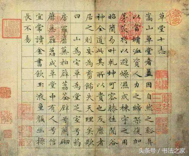 《草堂十志》结体秀密,用笔精意,一丝不苟。笔法极其精熟,锋芒所到,神气活现。静心观赏每个字的体势,无不具有玉质仙骨之体态、超尘出世之风神。