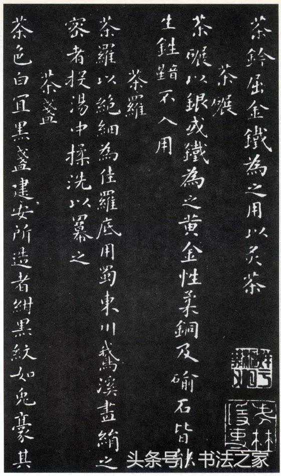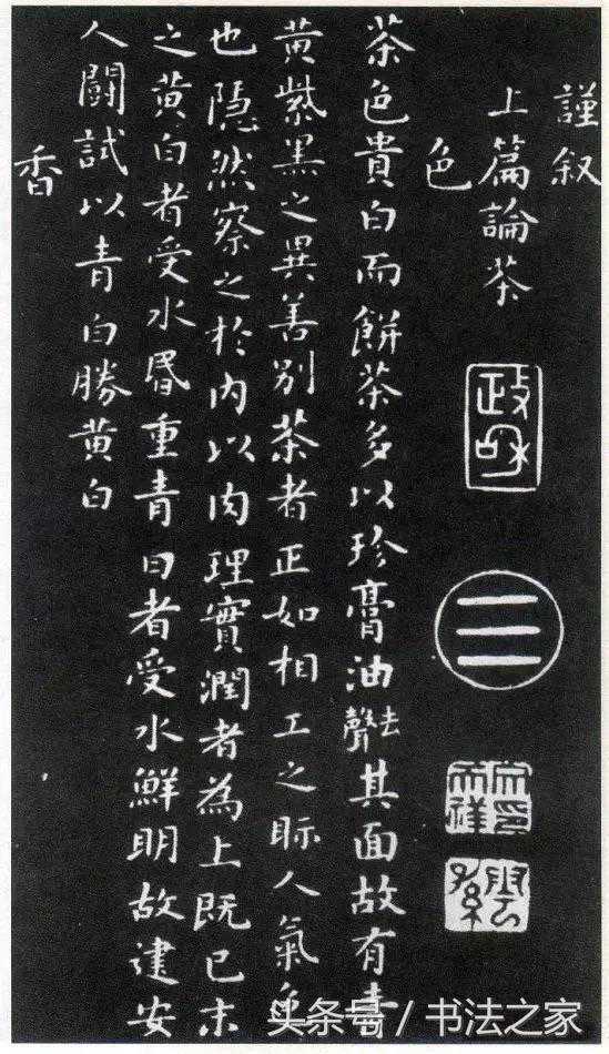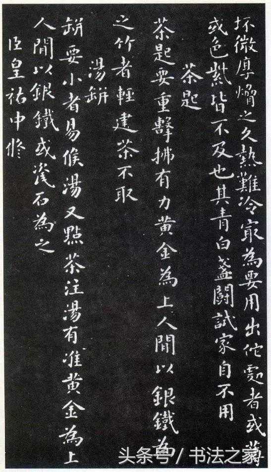 《茶录》虽有千余字,但纵观全帖无一倦笔,颇有二王楷法。字字劲实端严,横逸飘发,既灵活又沉着,是蔡襄书法艺术的杰出代表作。