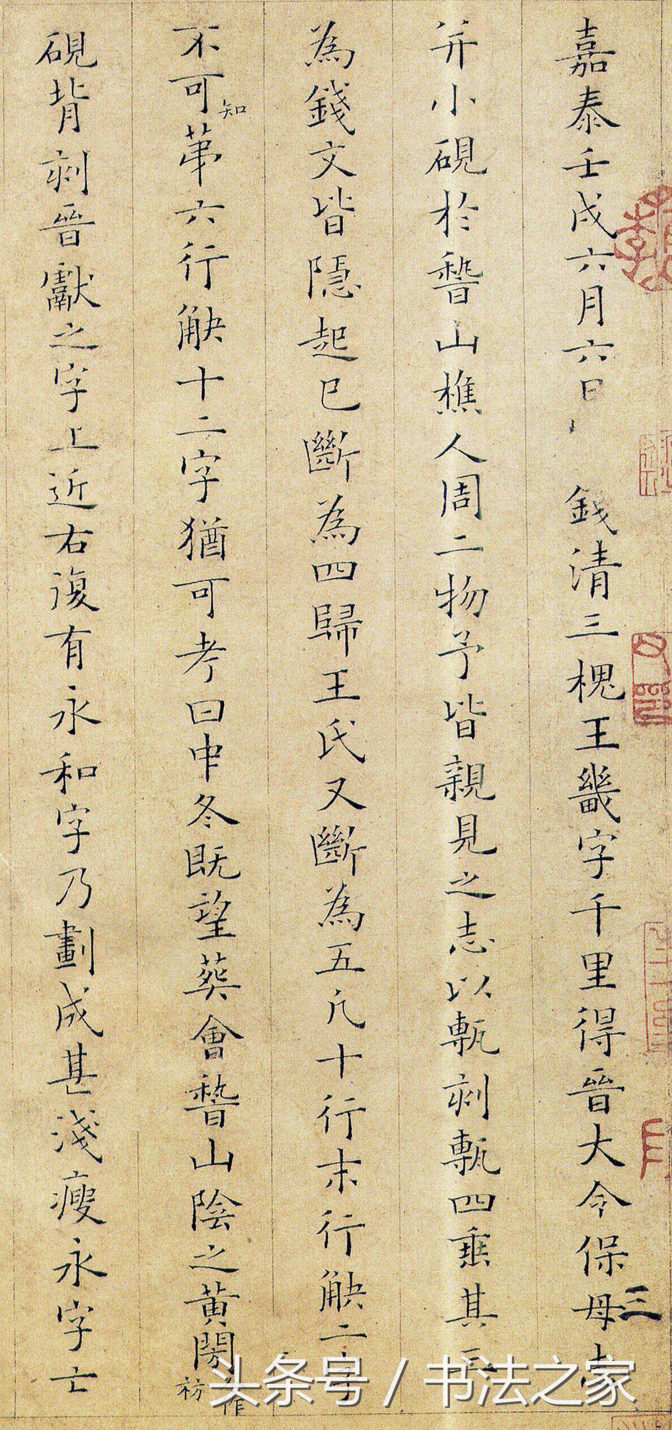 姜夔的书法作品极为罕见,《跋王献之保母帖》为其代表作。全文楷法谨严,又具潇洒秀雅之态。