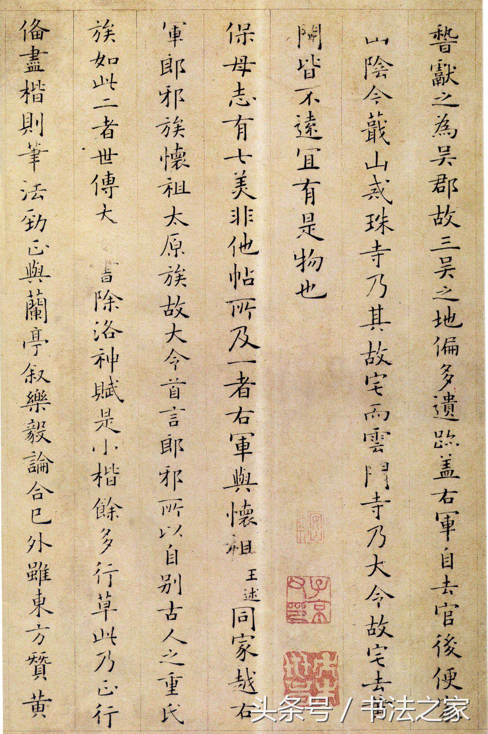 《乐毅论》基本摆脱了隶书的痕迹,具备了完备的楷书法则。用笔沉着内敛,扎实劲健;点的姿态生动,细腻圆润。在整体风格上呈现出端庄沉着、圆润峻拔、动静有致的中和之美、雍容之美。