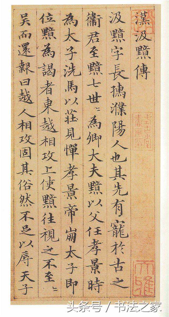 《汲黯传》楷法精绝,峭丽峻拔,清逸出尘,颇有晋唐遗风。笔法劲健圆润,结字大小随形,采取竖有行、横无列的传统小楷章法,错落有致,形笔飘逸,使人欣赏时不觉有呆板局促之感。
