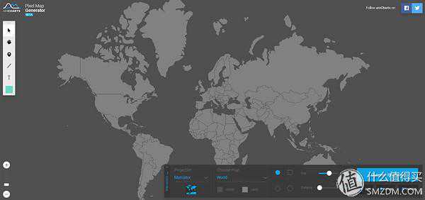 pixelmap是一个在线的地图生成网站,可以提供全球地图或者单个国家的地图,可以在上面对不同地区用不同颜色表示,还可以随意添加线条、文字和图标,提供SVG/HTML/IMAGE三种格式下载