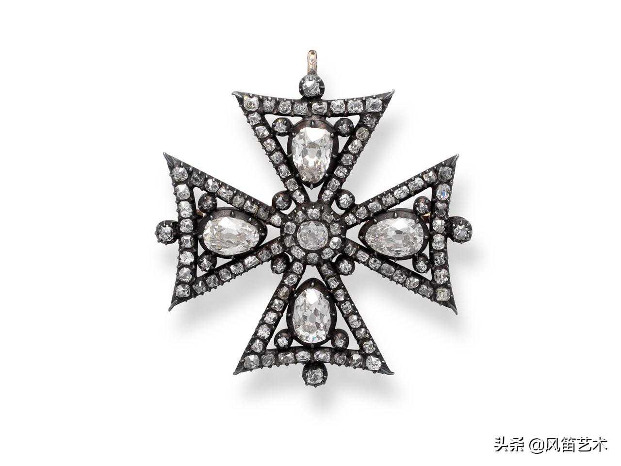 ▲镂空马耳他十字轮廓,镶有古老的矿形切割钻石,
