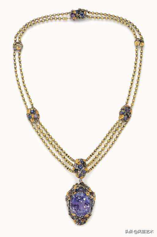 ▲2006佳士得拍卖的LOUISCOMFORTTIFFANY制作的黄金蓝宝石吊坠项链,1910年,成交价262,400美元