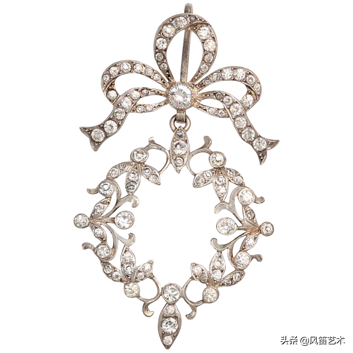 ▲爱德华时期的镂空花纹铂金镶钻胸针