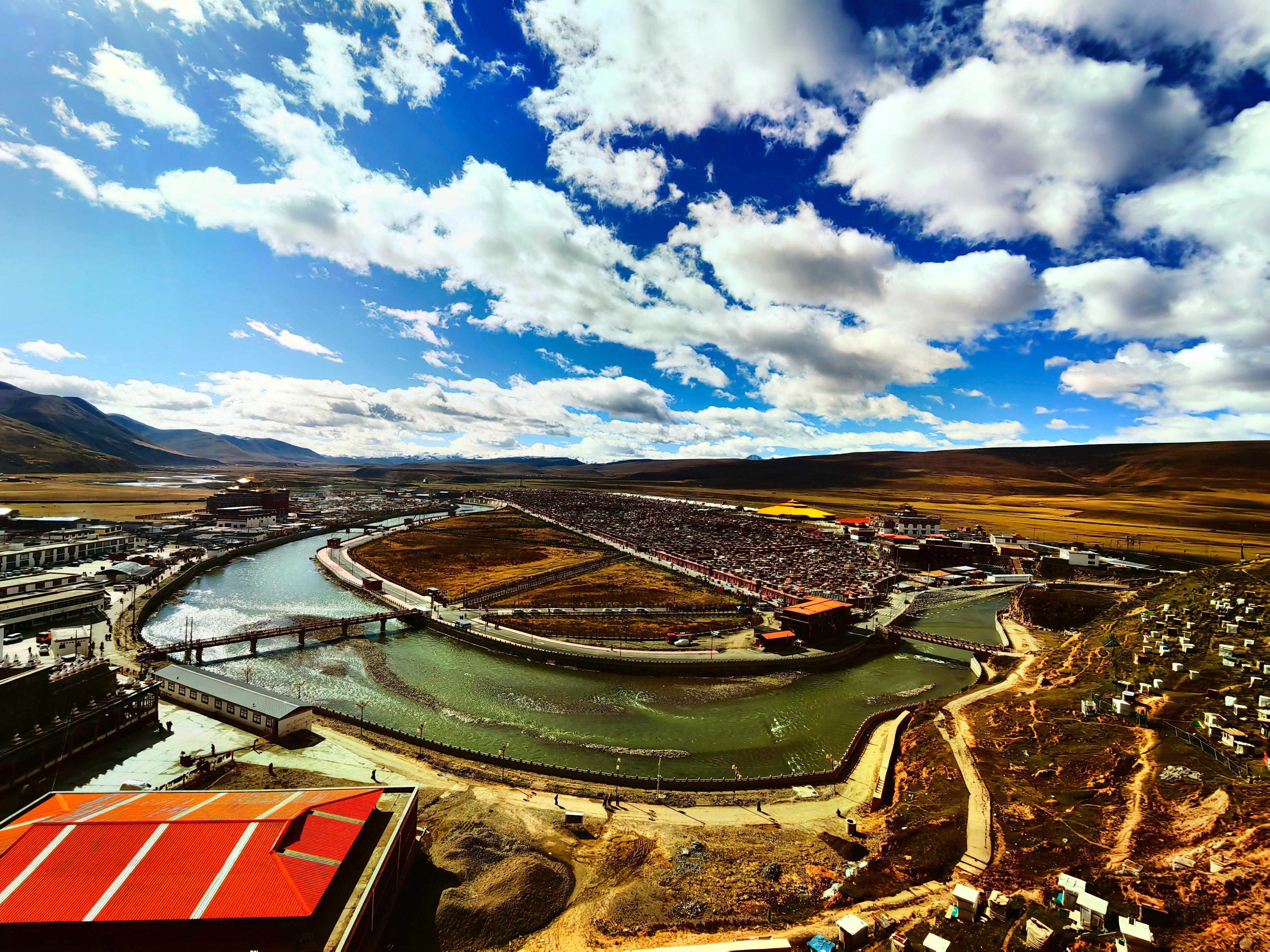 今天从白玉县前往道孚县。沿着甘白路(如今是省道S314)首先来到亚青寺。亚青寺建于昌台大草原,昌曲河穿寺而过,地势平坦、视野开阔。亚青寺是与色达佛学院齐名的大型修学圣地,周围常住有两万余僧尼。亚青寺的大部分修行者的房屋是绕河而建,以河为界分为扎巴(指出家男众)、觉姆(指出家女众)两区。据说亚青寺是世界上出家女性最多的地方。