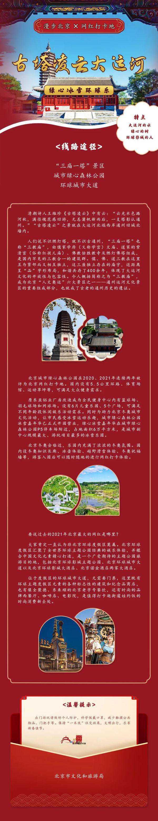 北京市文化和旅游局发布10条“漫步北京×网红打卡地——虎年春节潮玩北京旅游线路”,为在京过年的北京市民以及来京游客提供一份时尚潮流的旅游消费指南。