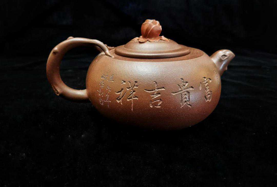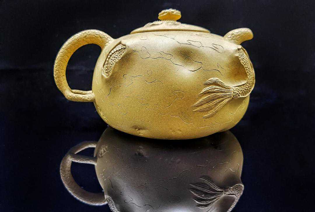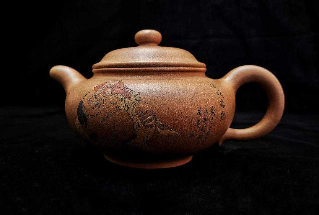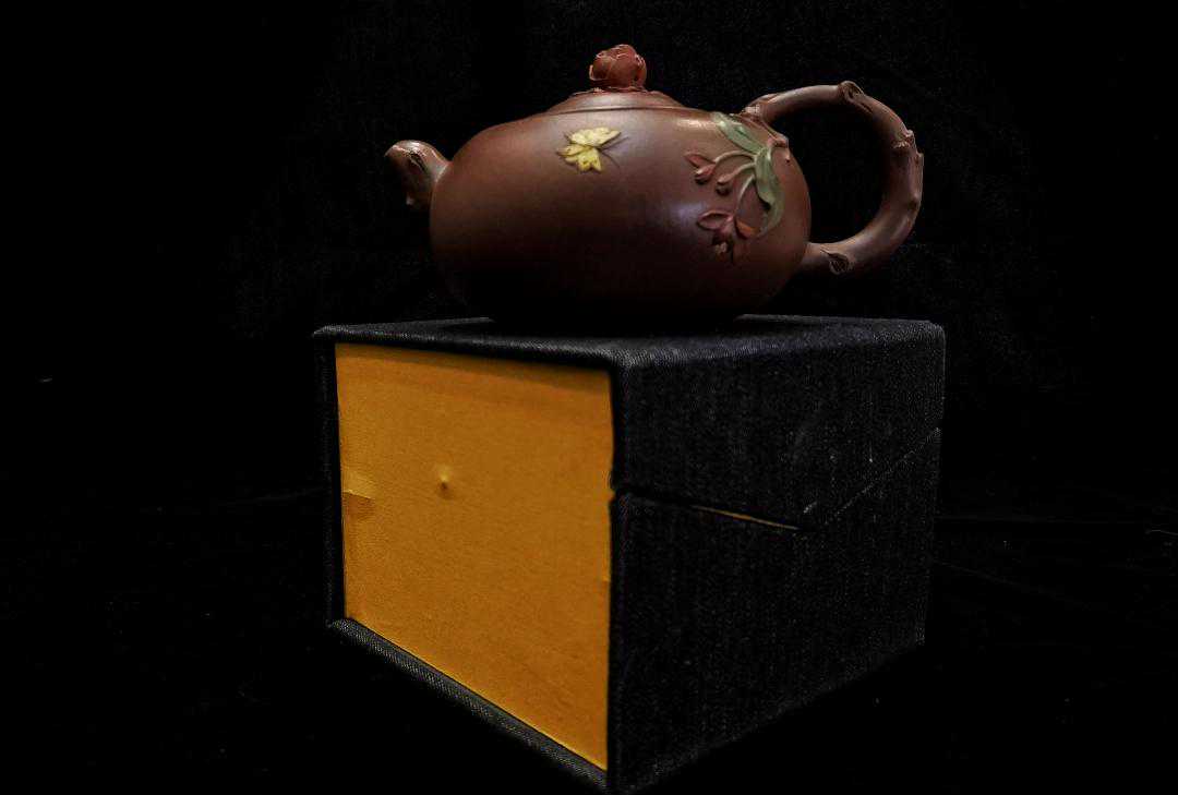 紫砂壶的美在于它集壶泥、壶色、壶形、壶款、壶印、题铭、绘画、书法、雕塑、镌刻诸艺术,共融一体。