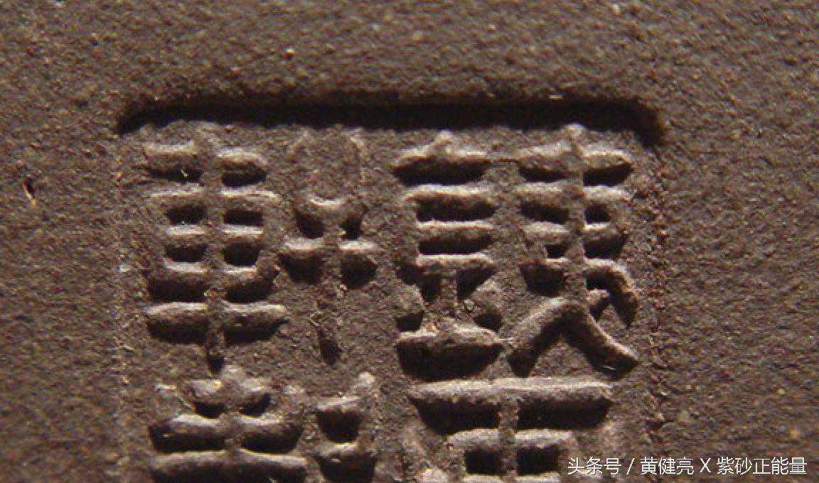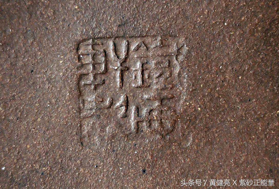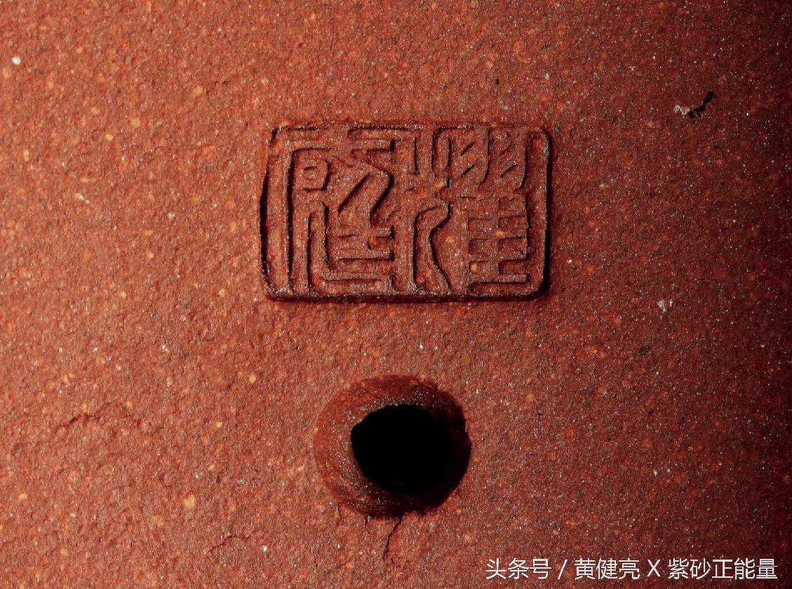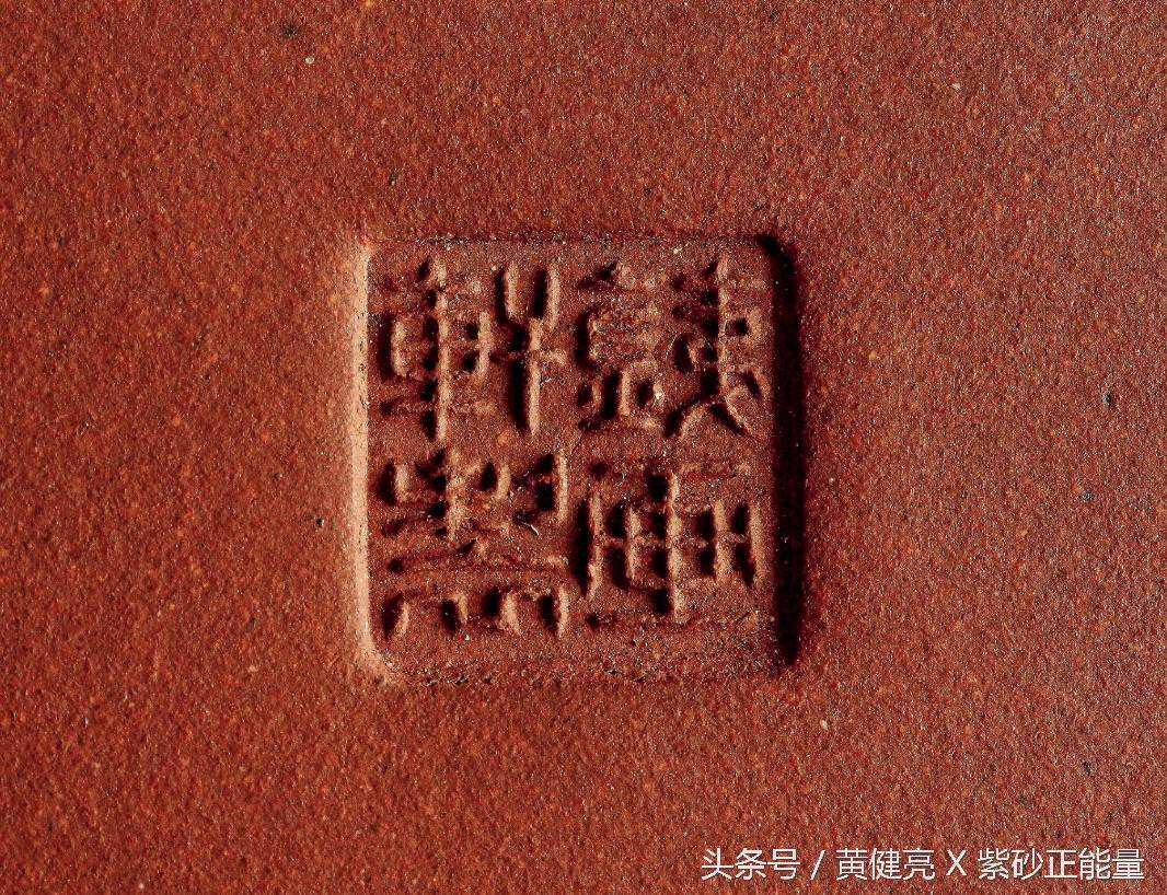 早期茶壶印款,一般为刻款,竖写“铁画轩”三字,刀法讲究老炼,楷书行书皆有。其后分为大壶印款、小壶印款二种。大壶印款底钤大方章,大圆章阳文篆书“铁画轩制”。小壶印款底钤长方小章阳文楷书“铁画轩制”。壶盖壶把有制壶者印款。