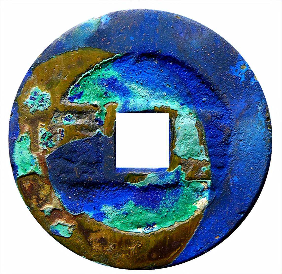 二、爆蓝锈即便是蓝锈,古钱币中的蓝也是分等级的,有深蓝,有翠蓝,也有这种犹如硫酸铜一样的天蓝!这种坑口大部分出现在南方地区,例如南方最有名的腾冲地区。
