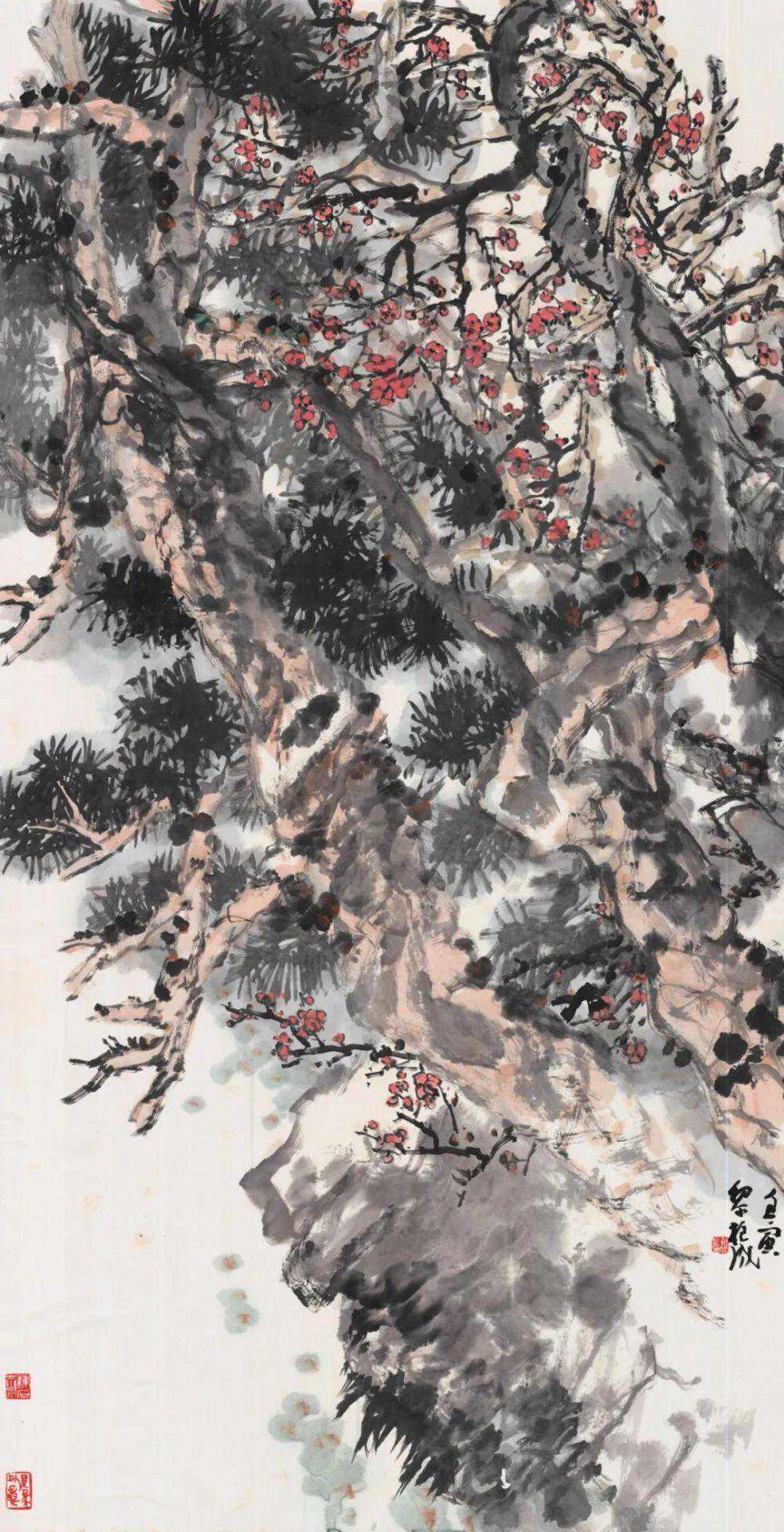 黎柱成的画具有浓烈的岭南特色,纵横均匀带来扑面而来的气息,尤其是他的传统程式和新题材的把握,处理的非常好,他的花鸟画的题材很多,包括海棠、牡丹、木棉都非常有特点。这些传统的题材又是非常难创新的题材,他用自己独特的表达方式呈现出来,是非常难得的。
