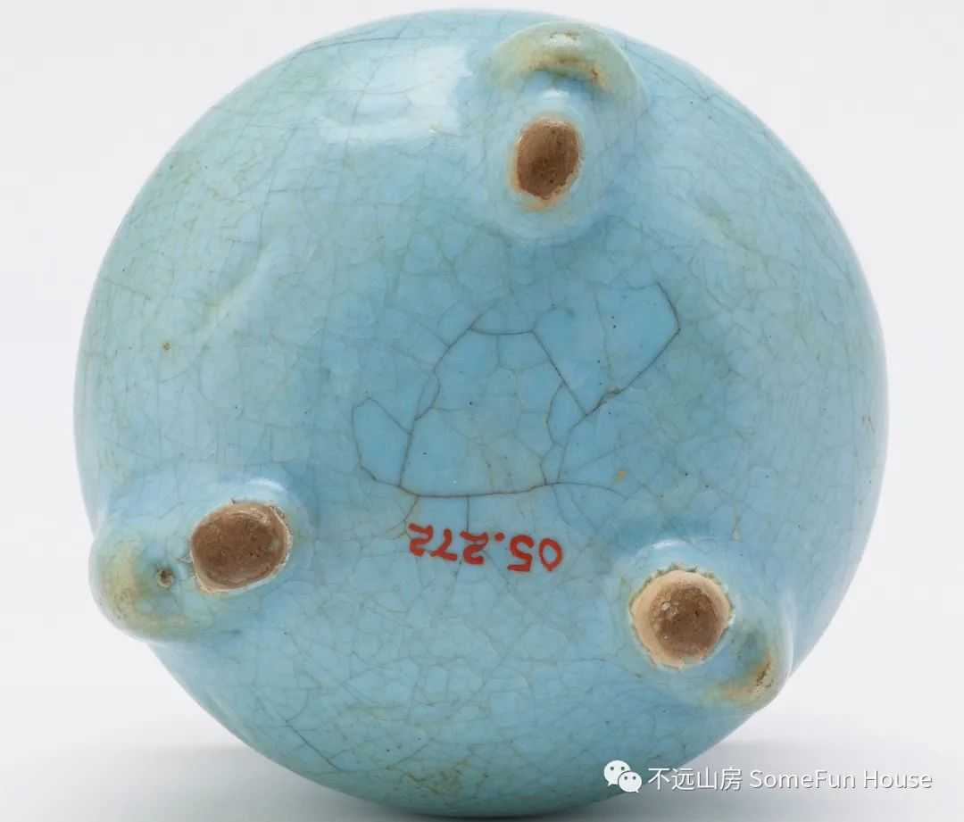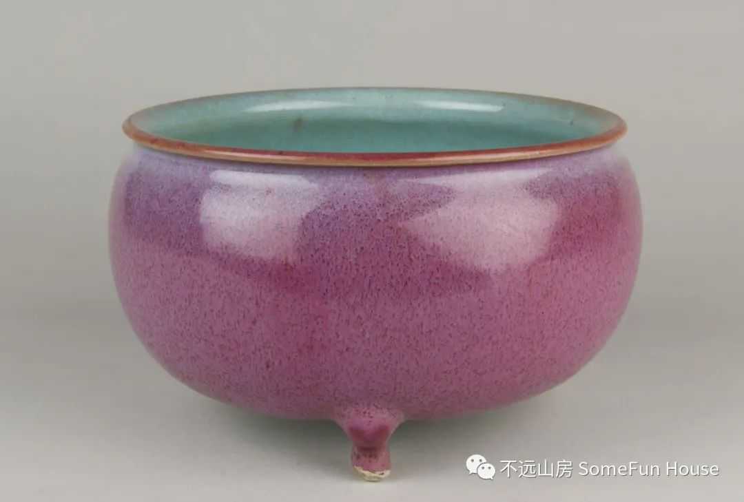 大都会艺术博物馆藏金代钧窑天青釉玫瑰红窑变三足炉