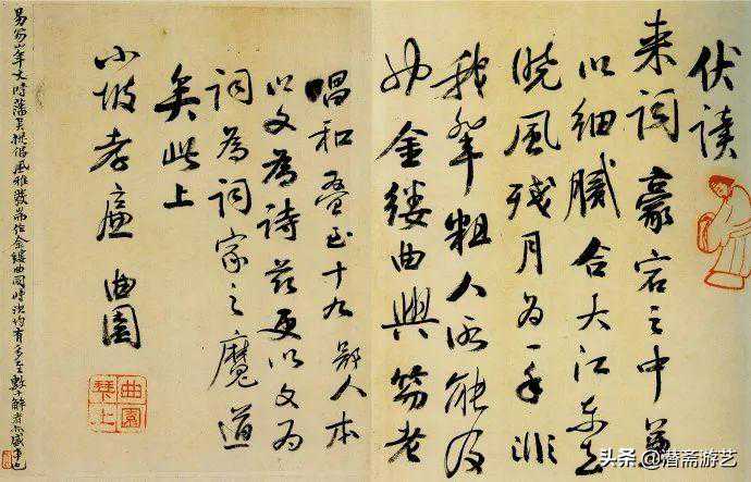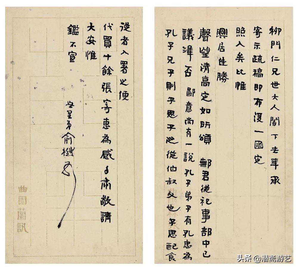 昨晚平伯往顾,以古槐书屋制笺一匣见赠。凡四种,题字曰“何时一尊酒”、“拜而送之”、“跂予望之”、“如面谈",皆曲园先生自笔书画,木刻原板,今用奏本纸新印,精雅可喜。此数笺不见于《曲园墨戏》一册中,岂因篇幅稍大,故未收入耶?而乃特多情味,于此可见前辈风流,不激不随,自到恰好处,是为师范。观市上近人画笺,便大不相同,老年不一定少火气,青年亦不一定多润泽味,想起来极奇,或者因不会与会之异乎?此笺四十枚,随便用却亦大是可惜,当珍藏之,因题数语为识。