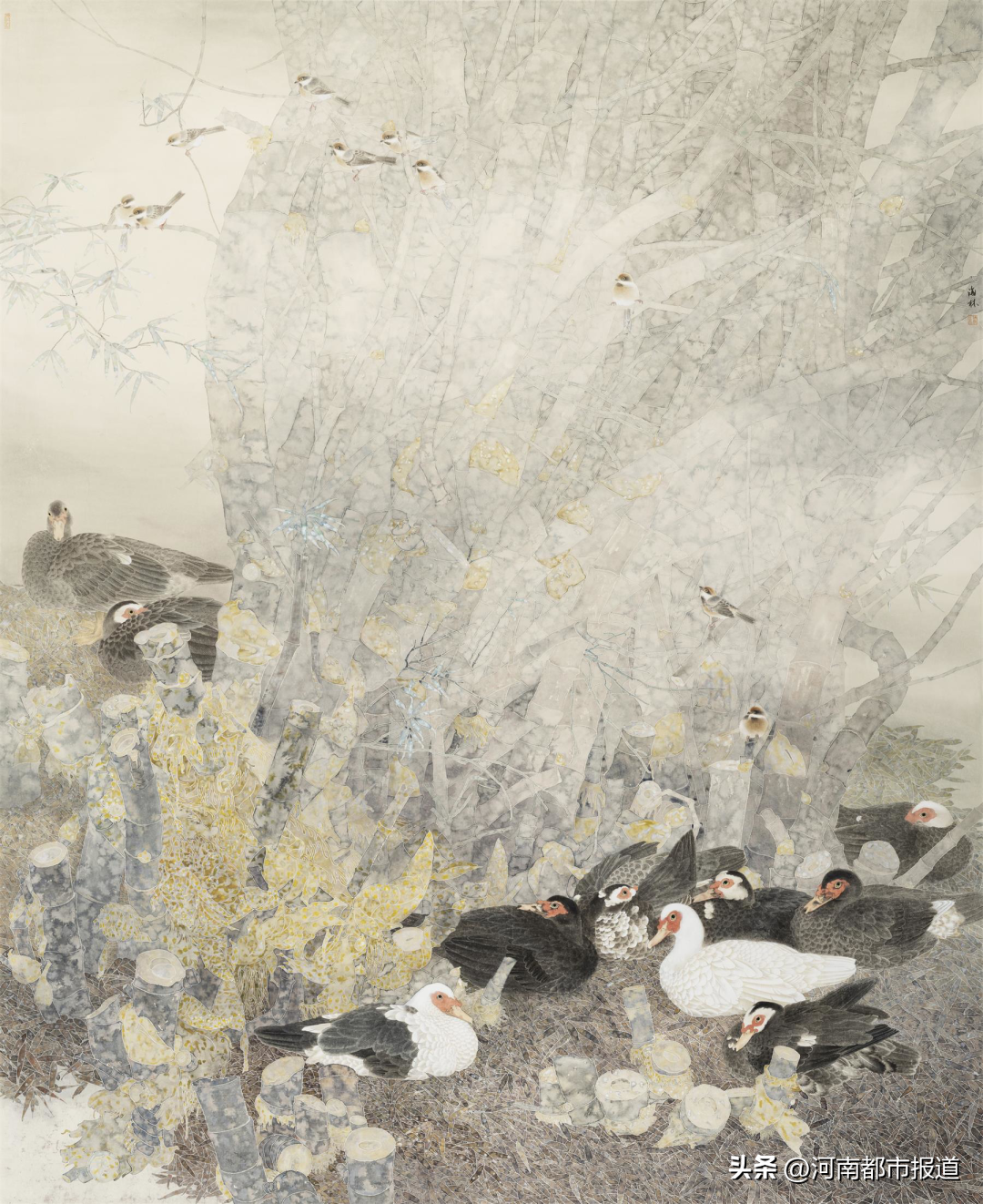 笔黑当随时代,时代在变化,生活环境在变化,人们的精神面貌也发生了变化。画家们以更开阔的视野、更清晰的思路、更精湛的手法,深人生活、扎根人民,用作品反映时代、讴歌人民。“新面貌”“新突破”是大多数人对展览的整体印象。中国工笔画学会会长陈孟昕欣喜地看到,展览中出现了很多新面貌,语言探索上更加多元,引入很多新观念,展览中的工笔画打破了传统的技法局限,有很多突破,在继承传统的国画基础上,比如我们看到有些作品将油画、版画、雕塑、剪纸、戏曲、舞蹈等艺术形式融入其中,以新的方式和新角度来诠释国画,为中国画提供了很多未来发展的可能性。福建省美术家协会副主席林涛观展后告诉记者,明显看到大家对艺术创作态度更加认真、更加投入,尤其工笔画创作更加丰富,出现了很多新面孔。展览打破了福建省美术家协会副主席、福建省美协山水画艺委会主任梁明对展览的一些固有看法,“不再是千人一面,整个展览呈现的面貌非常新。无论知名画家还是青年画家,每个作者都有自己的思想,在笔墨语言也在尝试新的探索和追求,大家在继承传统的基础上,结合了很多当代的构成意识”。