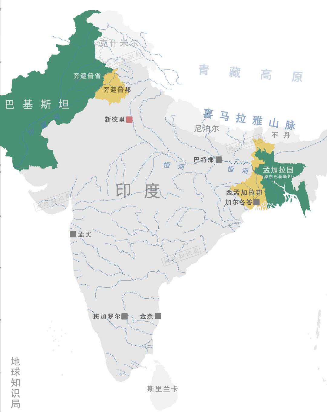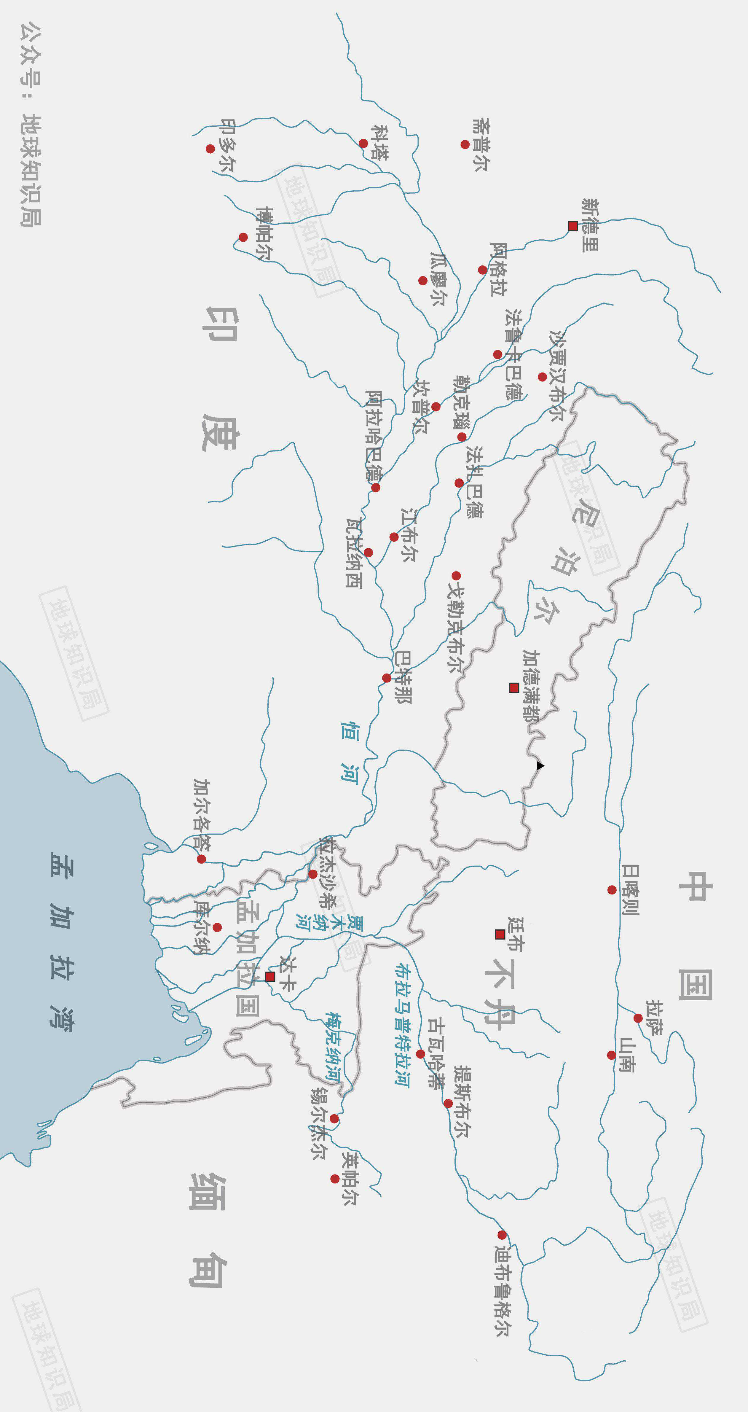(恒河的流量远大于印度河)▼