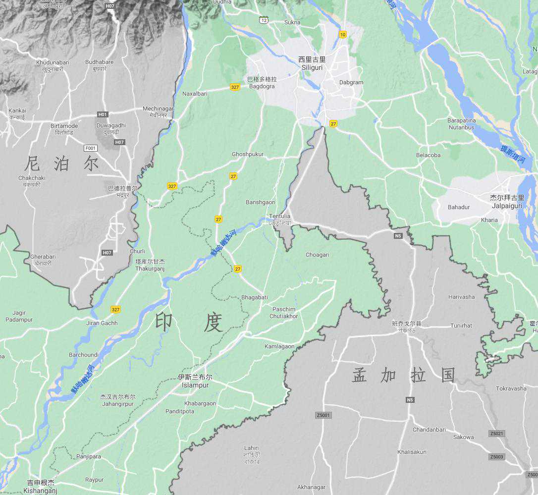 孟加拉国与尼泊尔之间,非常窄的一条通道