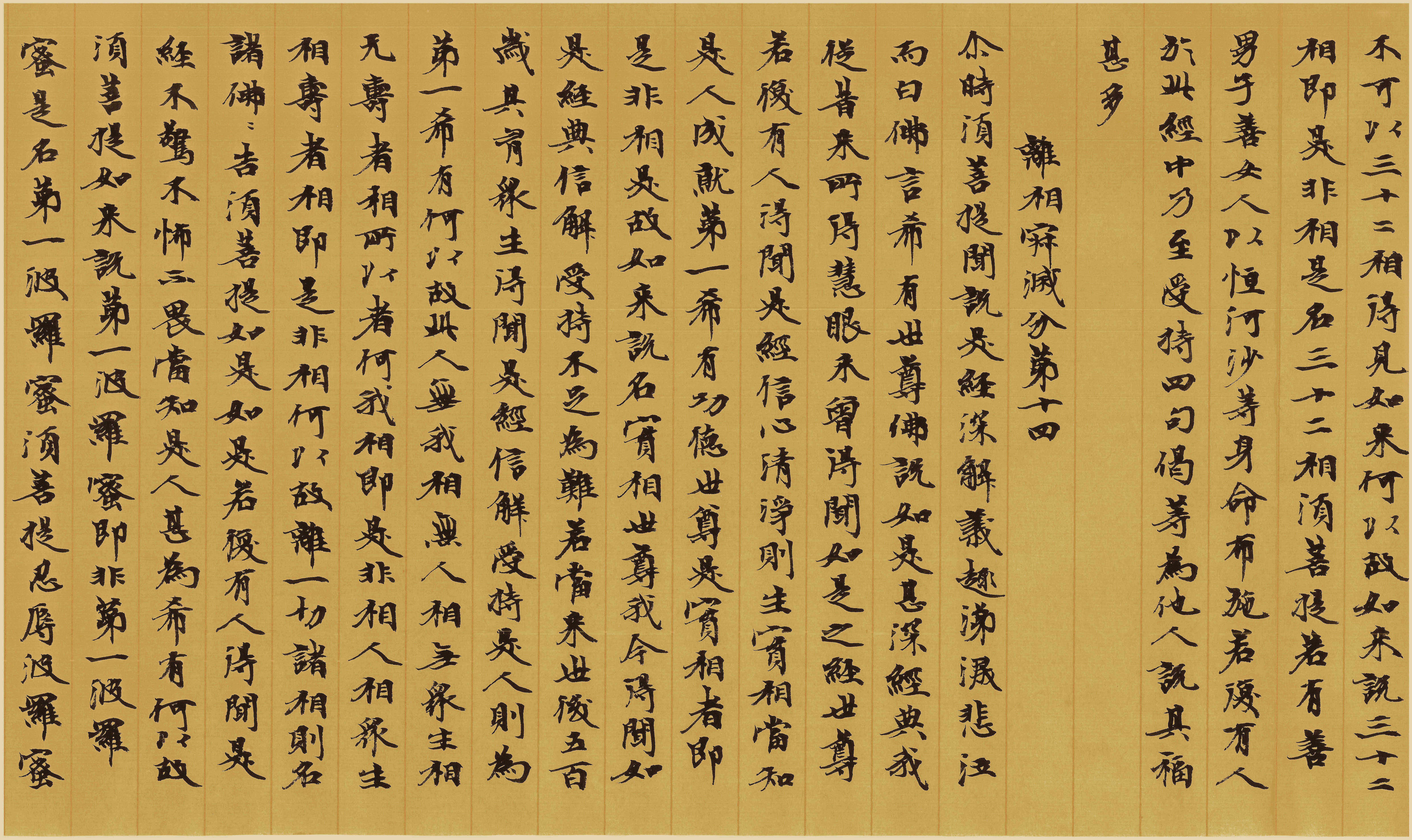 若从前者说,唐人抄经像一块儿碑,它早已挡住了后面的去路,如最高水平的《大般若涅槃经迦叶菩萨品第十二》、沈弘的《阿毗曇毗婆沙卷第五十二》,包括刘弘珪的《金刚经》等都是后来者无法越逾的,然,这些“经生”高手,他们并不是当时最有名的书法家,原因很简单就是:他们把经只当经来抄写而已!因而,它们所呈现的所有关于经卷的气息,除肃穆、庄严、寂静之外,依然还是这些特质!而一千多年后,吾人无论如何整理自己的土壤,但再也无法长出那样的品种了,当然我的则更不足论。