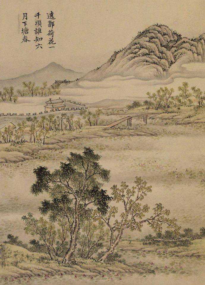 苏轼诗意十二帧,臣蒋溥恭画。