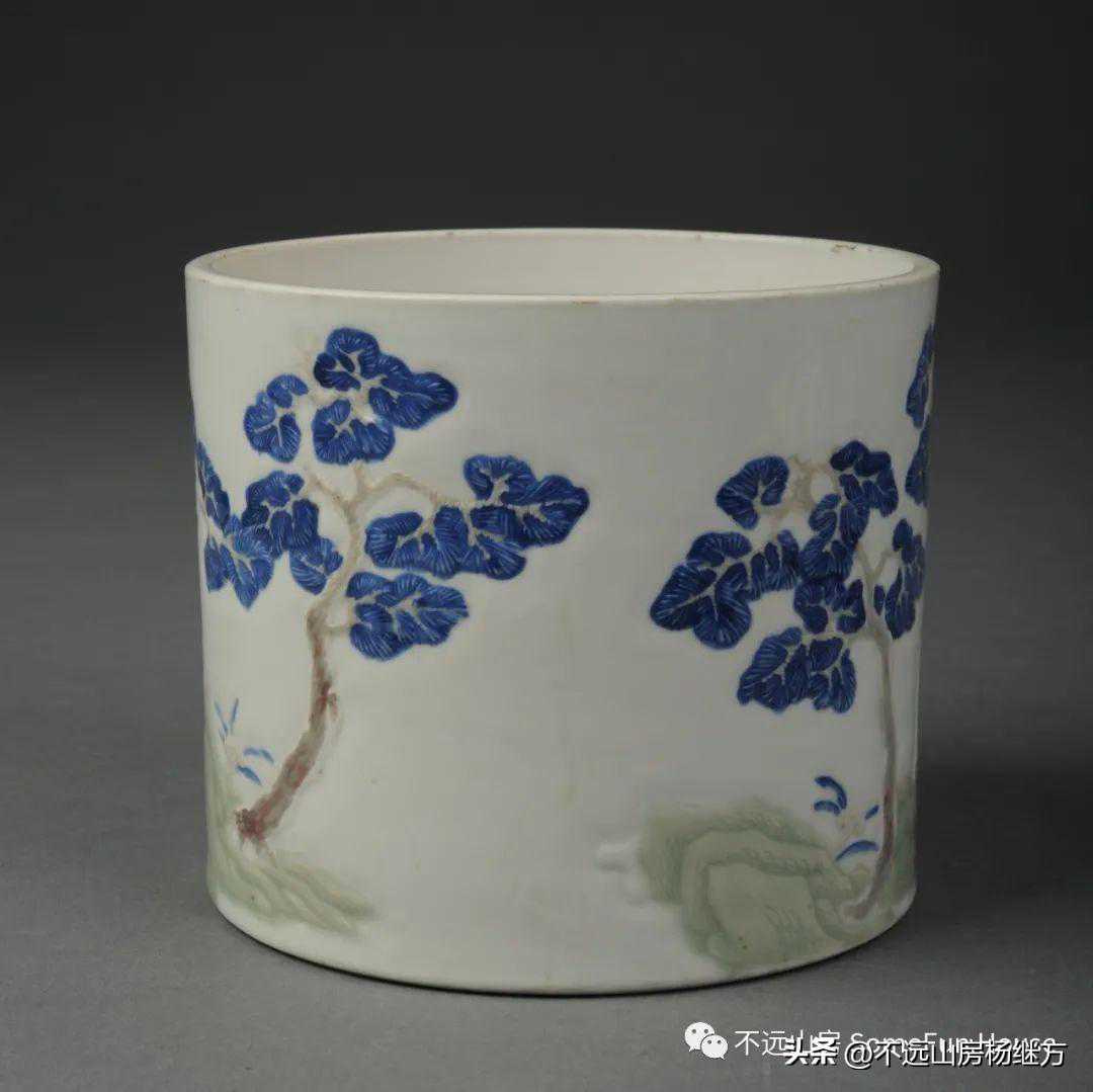上海博物馆康熙官窑青花釉里红人物笔筒