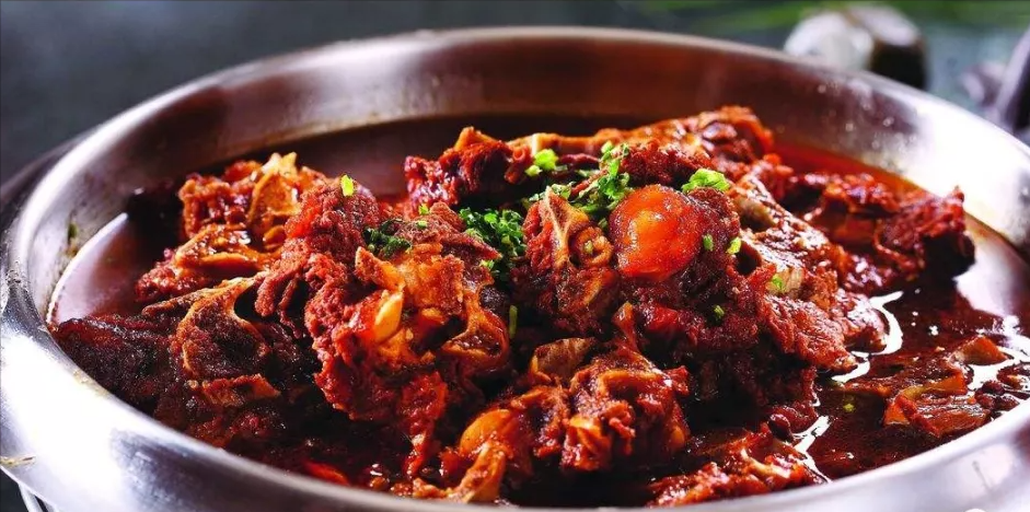 3.将切好的牛肉、牛筋倒入锅中炒香,加入调料,放入高汤,收汁即可。