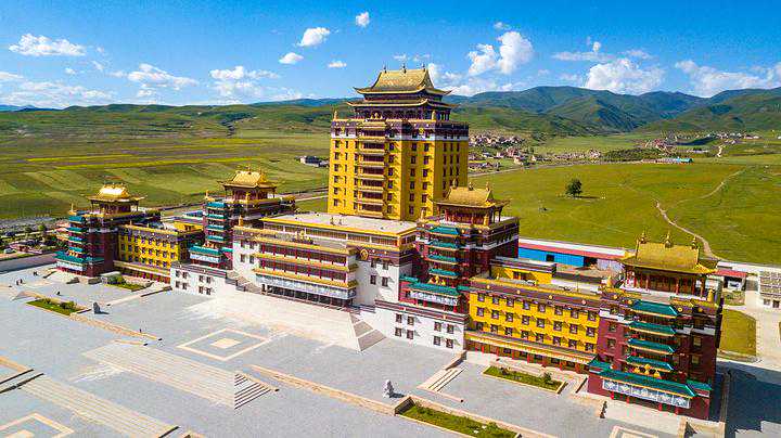 在甘南的合作市有一特别的建筑,拔地而起,与周边的房屋形成鲜明的对比,这就是米拉日巴佛阁,全称叫“安多合作米拉日巴九层佛阁”。名字虽然比较长,但是比较明了,安多是安多藏区,甘南嘛就是属于安多藏区的;合作就是合作市;米拉日巴是个人名,由此可以看出这个佛阁与米拉日巴有着很大的关系。米拉日巴是著名的高僧,也是藏传佛教噶举派第二代祖师。佛阁高九层,外墙颜色以红色和黄色为主,方方正正的,融藏族堡式建筑与佛阁式建筑特色为一体,外观雄浑壮观。