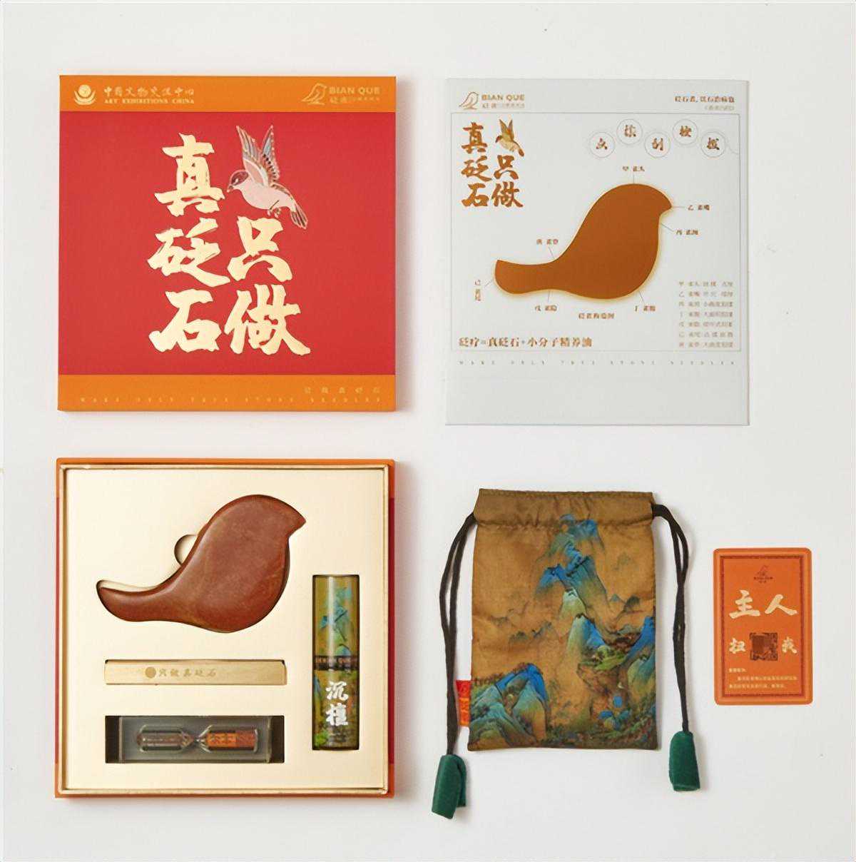 砭雀真砭石和中国文化交流合作中心联合出品《砭雀真砭石套盒》,其中包括砭雀真砭石、《千里江山图》联名的丝绒袋、纯铜底座、砭雀电子收藏认证卡等共7件产品。其中,经典水墨画作《千里江山图》联名丝绒袋具有极高的文化价值,砭雀电子收藏认证卡更是为藏友们提供了优良选择。