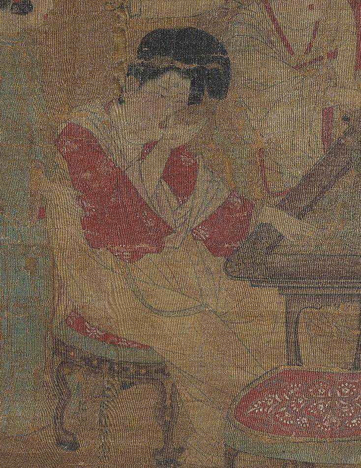 此图旧传为唐人画作,但据其谨细缜密的画风和图中所陈设的器物的造型、装饰等,当出自南宋画院画家之手笔。